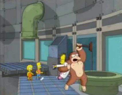 Donkey Kong aparece en dos episodios de Los Simpson, y un tercero en el cual se le compara: