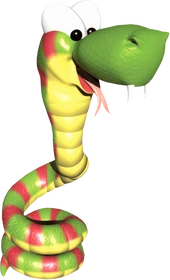 Rattly es una serpiente cascabel de color verde que aparece por primera vez en Donkey Kong Country 2: Diddy's Kong Quest, como un amigo animal.