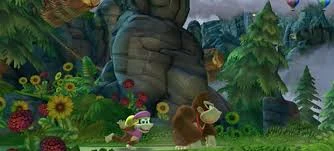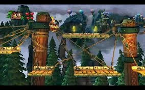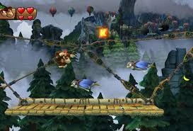 Prima parte del livello. Sullo sfondo si nota il percorso successivo che Donkey Kong dovrà affrontare.