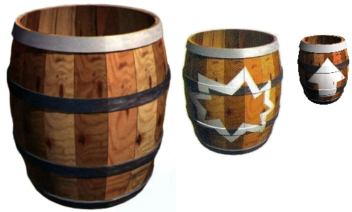 - Arrow Barrels ou Barris de Direção: Canhões de Barril exibindo uma seta apontando para o topo deles. Estando geralmente inclinados e apontando para uma direção, eles disparam conforme o sentido da seta.