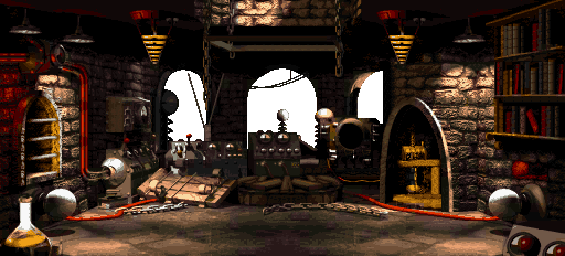 Depois que o seu reino na Ilha do Crocodilo tinha sido destruido, K. Rool achou esta fortaleza no Kremisfério Norte que estava abandonada e montou o seu laboratório pra criar seus monstros pra deter a Família Kong. Dentro do castelo é um laboratório que fica no sotão, com uma grande quantidade de máquinas e dispositivos espalhados ao redor dele. Uma estante também decora a parede direita do castelo e várias correntes de penduradas no teto. Uma pequena câmara coberta por uma cortina vermelha é encontrada também no laboraório e atrás desta cortina é um painel de controle que operava o KAOS.