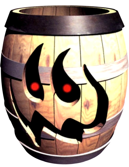 Boo Barrels act somewhat like barrel cannons but with a twist; per the ghost-like name, Boo Barrels tend to reappear and disappear suddenly during a stage. They always return and disappear in the same spot, though with every reappearance they aim a different direction. This makes them very tricky because their patterns are quick and a misfire often leads directly into an enemy (usually Buzz) or a wall.
