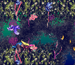 In this underwater stage, a Nibbla will follow the Kongs from the beginning to the end of the stage. At first sight, the Nibbla is light blue; while the Nibbla is this color, it will not attack Dixie and Kiddy Kong. If the Nibbla is fed a Lurchin, however, it will either turn blue or red. If the Nibbla is blue, it is a warning to the Kongs that it could attack them. If the Nibbla is red, it is a sign that the Nibbla will attack them shortly.