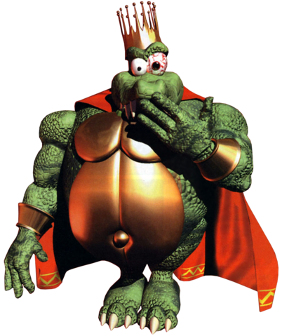 However, K. Rool refuses to allow Donkey Kong to take the Crystal Bananas back. As a last resort, he uses the last one in his possession to power up. Donkey Kong's assault is thwarted as the sky turns red with lightning streaks. Shortly as everyone gets their bearings, they look up to see King K. Rool now at a monstrous, gigantic size. The evil reptile king growls at his foes, commencing their final showdown. The villain tries to attack by using his giant claws (either snatching or smashing them), spitting fireballs and mines, summoning meteors and controlling the wind. After receiving five hits, King K. Rool is finally defeated and returns to his normal size. He plummets to the ground unconscious and Donkey Kong retrieves the final Crystal Banana that is expelled from him shortly after, signifying his victory.