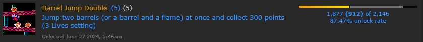 DK Hearthunt Barrel stage trophies - Beaten. LV1-1 Speedrun - Beaten. Hammers Rivets - Beaten. Hearts before Rivets - Beaten. Rivets before Hearts - Beaten. Firefox Right - Beaten. Firefox Left - Beaten. LV1 - Beaten. Elevator stage trophies - Beaten. LV2 - Beaten. Conveyor stage trophies - Beaten. LV3 - Beaten. LV4 - Beaten. LV5 - Beaten. 100% - Beaten.